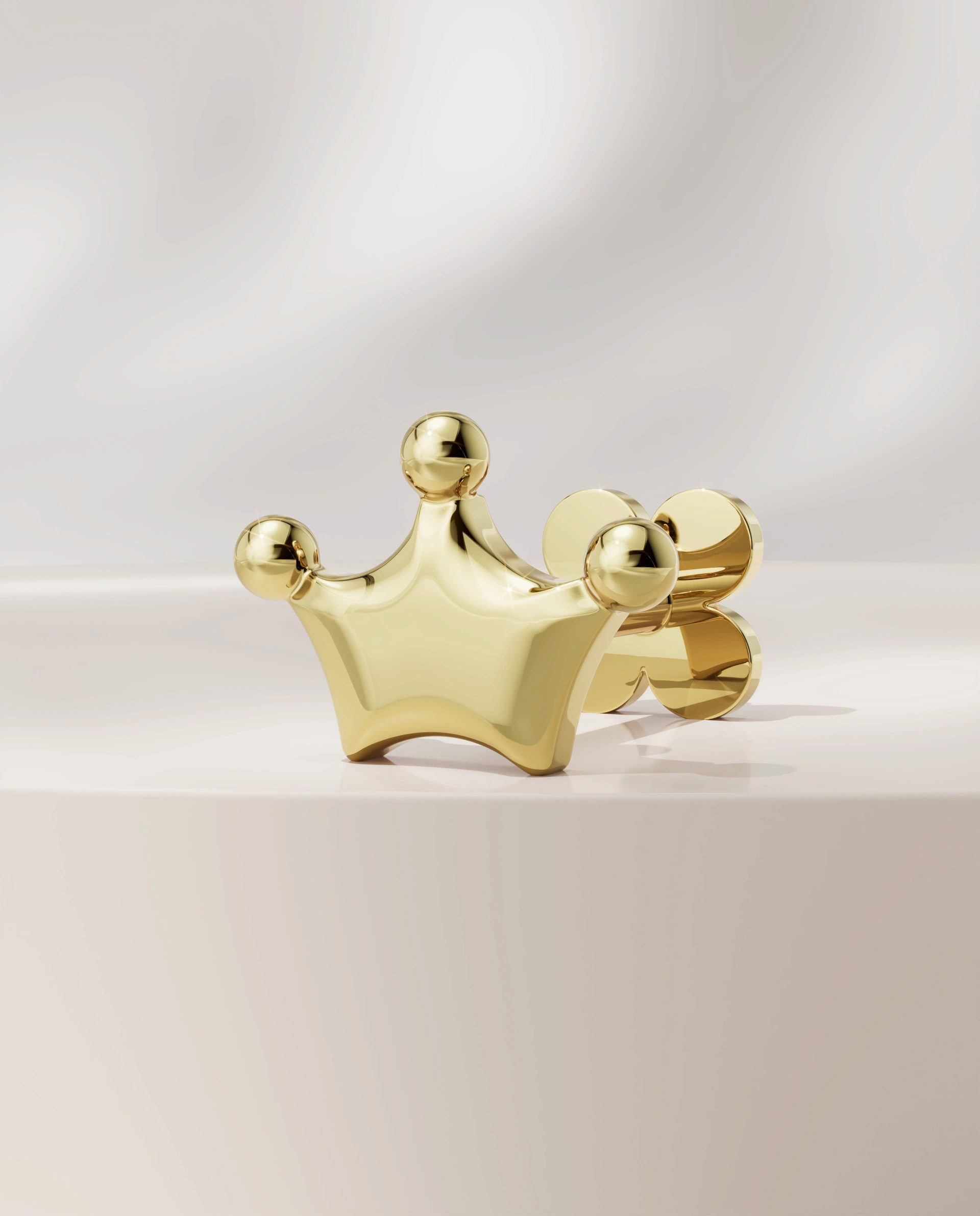 This polished 18K gold crown design delivers a sleek, statement-worthy silhouette with royal edge.
