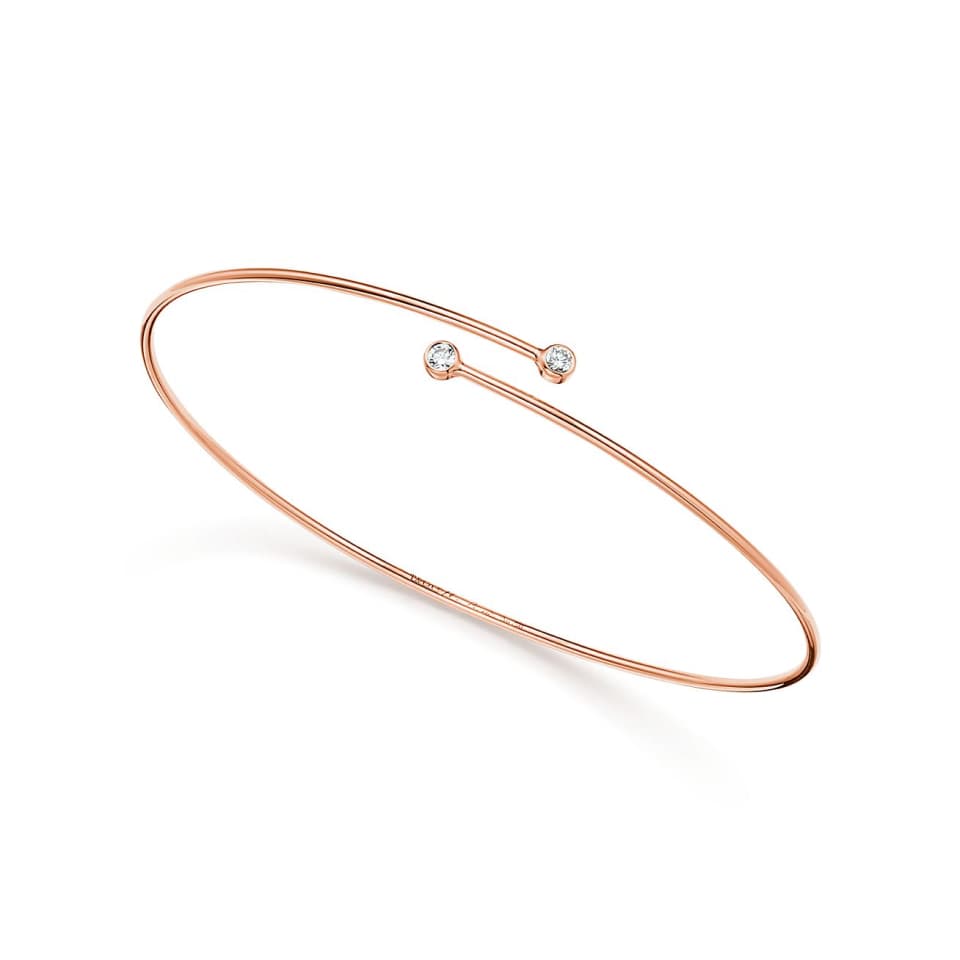 This sleek bangle is defined by overlapping ends accented with shimmering diamonds.